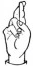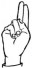 На ћирилици написано ЗДРАВОЉУБ РУХТЕСКИ састоји се из 17 слова [?]. Исписано ћириличном једноручном азбуком за глувонеме: